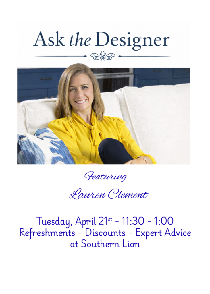 Join us on April 21 for our Ask the Designer seminar, where award winning designer Lauren Clement will answer your biggest home decor questions and offer personal, one-on-one advice to help you make the most of your home.